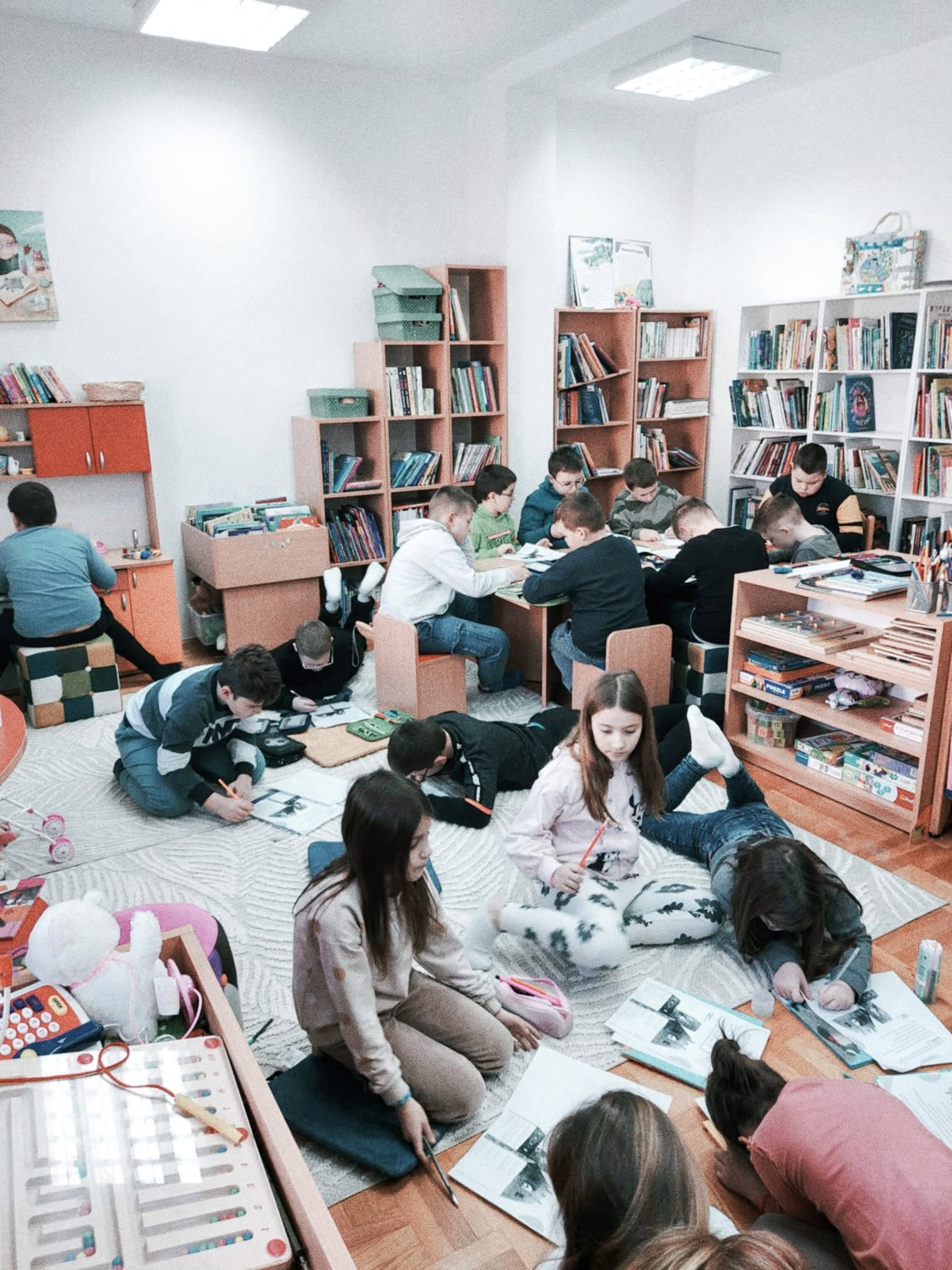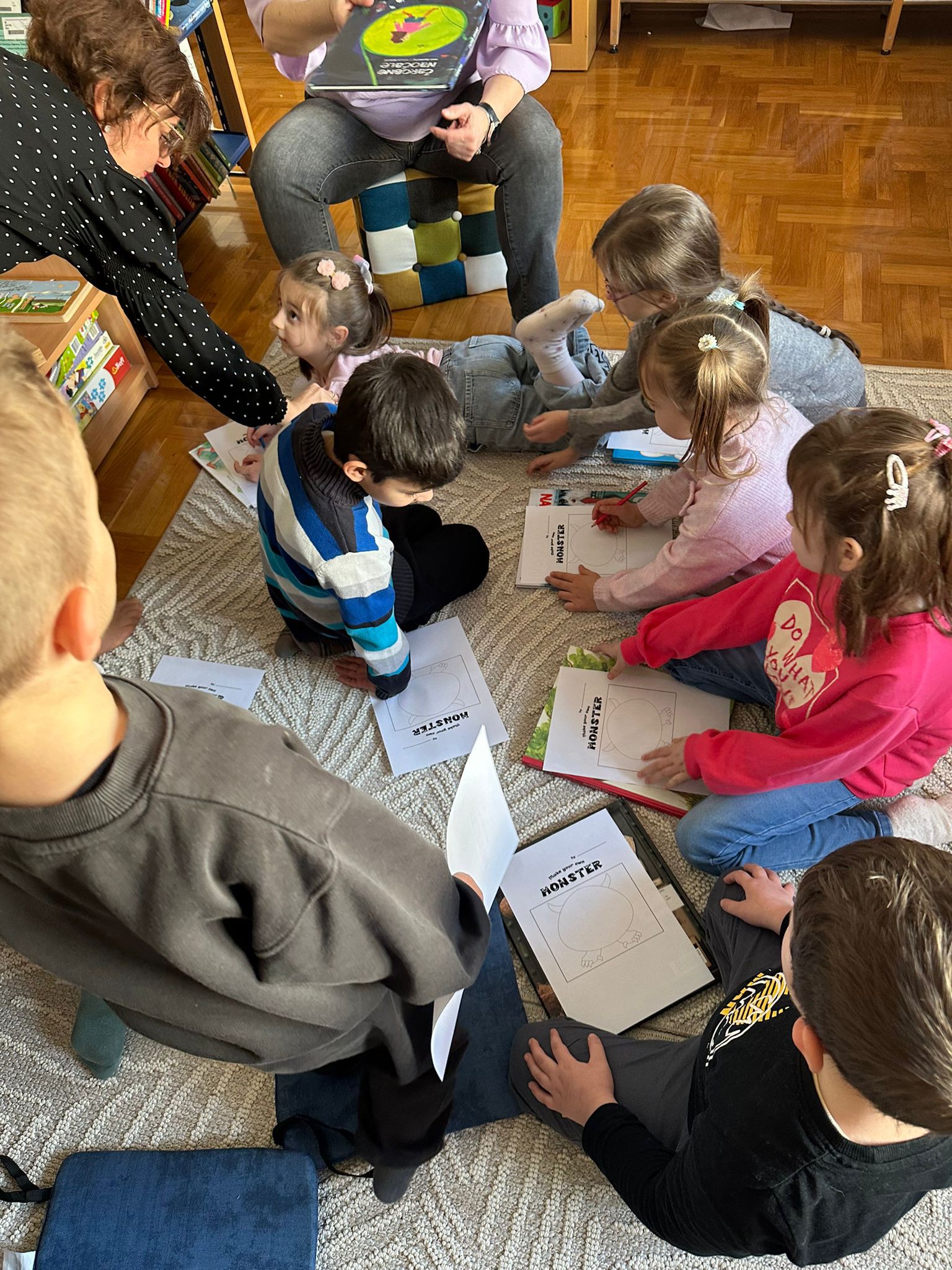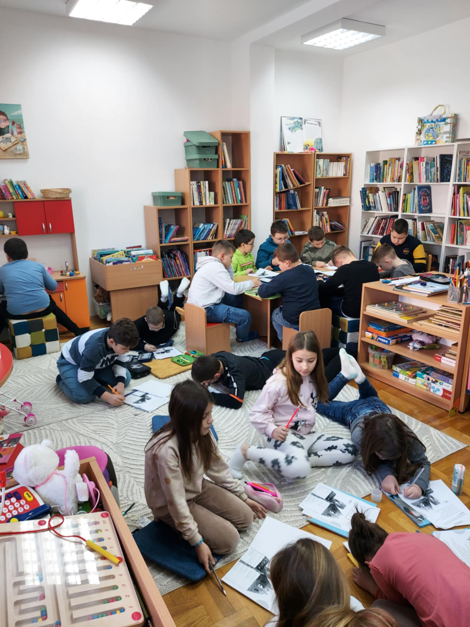 U ovih petnaest dana knjižnicu je kroz organizirane pričaonice posjetilo više od stotinjak djece, pročitalo se osam priča, riješili smo puno zadataka, a nacrtali smo bezbroj likova iz priča.