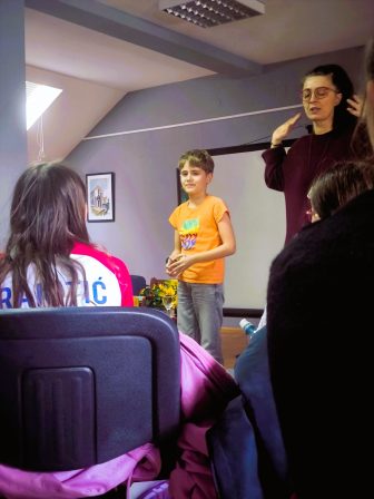 U petak (6. veljače) našu je knjižnicu posjetila Nikolina Manojlović Vračar, književnica, ilustratorica i akademska slikarica. Učenike 4. b razreda će u ovih nekoliko mjeseci autorica naučiti kako stvoriti priču! Učenici su s autoricom razvijali elemente priče, kako priču učiniti zanimljivom…Ispričala su djeca puno priča, onih istinitih dječjih, do onih lovačkih, mudrih…Idući mjesec nastavljaju!