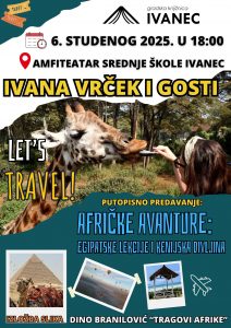 Ivana i Zoran pripremili su fenomenalne prezentacije, a neke fotografije i snimke ostavile su nas bez daha. Zahvalni smo na iznimnoj i toploj energiji koju su naši predavači donijeli sa sobom. Želimo im još puno novih avantura i osvojenih destinacija. Publiku je oduševila i izložba „Tragovima Afrike“ autora Dine Branilovića — čarobne radove inspirirane afričkim pejzažima i životinjama možete razgledati i u prostoru Gradske knjižnice Ivanec sve do sredine prosinca!
