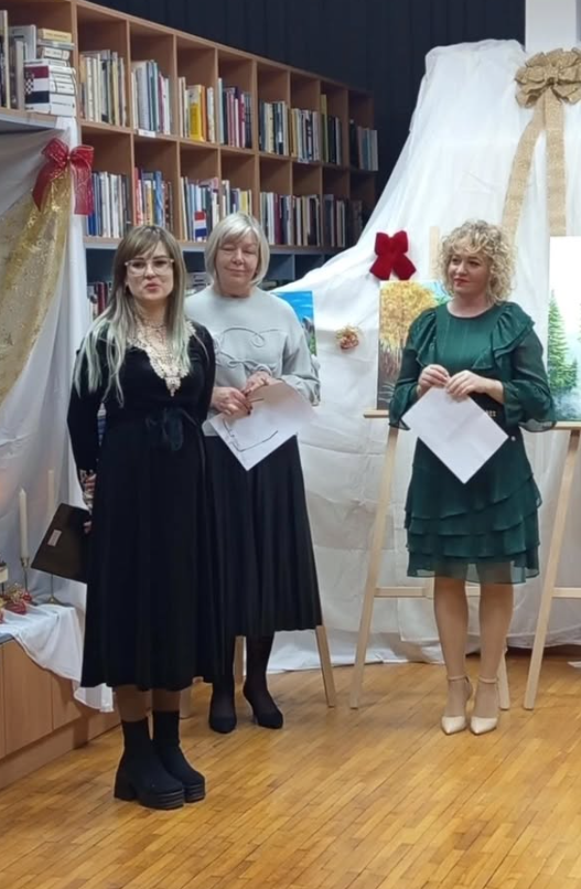 Zahvalni smo svima koji su sinoć bili dio ove večeri – autorici, gošćama, suradnicima i publici koja je ispunila prostor pažnjom, toplinom i interesom. Još jednom se potvrdilo da knjižnica nije samo mjesto knjige, već i mjesto susreta umjetnosti, emocije i zajednice.
