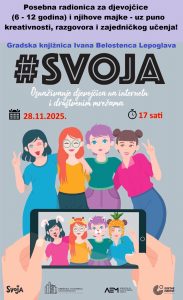 Projekt #SVOJA bavi se temama digitalne svakodnevnice, samopouzdanja, online pritisaka i kritičkog promišljanja, s naglaskom na osnaživanje djevojčica i mladih djevojaka. Projekt se provodi u partnerstvu s Goethe-Institutom Kroatien, uz podršku knjižnica i škola diljem Hrvatske. Radionicu će voditi autorica projekta, viša knjižničarka, ravnateljica Knjižnice i čitaonice Grada Preloga i ambasadorica Mjeseca hrvatske knjige Maja Lesinger.