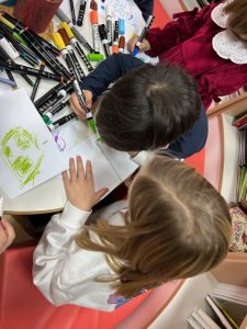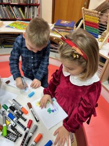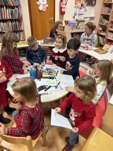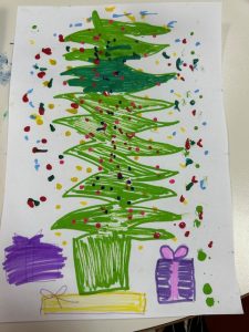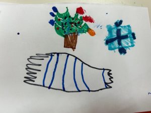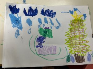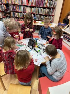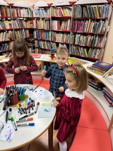 Nakon čitanja slikovnice i razgovora o priči slijedilo je vrijeme za crtanje- što je strašne zmajeve čekalo ispod njihovog novog, vatrootpornog božićnog drvca?