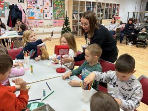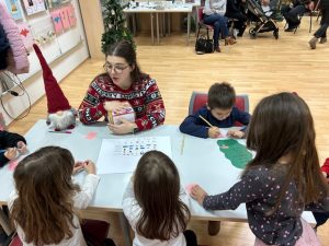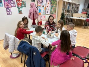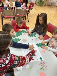 Kroz zanimljive zadatke i igre, djeca su se družila i izrađivala božićne ukrase kojima su kasnije ukrasila bor