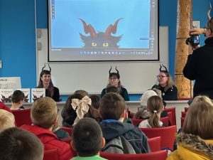 Na kraju predstavljanja učenike je dočekalo pravo strašno iznenađenje – posjetila su ih dva Krampusa! Uz ciku, veselje i malo straha učenici su proveli nekoliko minuta s Krampusima iz slikovnice, a potom je na vrata stigao i sam sveti Nikola.