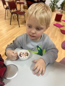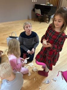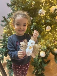 Kako bi nas pravi duh Božića pratio ovih dana, nakon čitanja slikovnice izrađivali smo Božić u malom- djetešce Isusa na slamici.