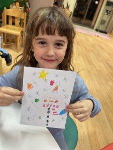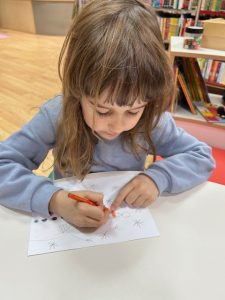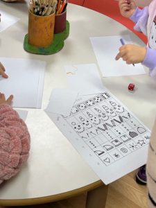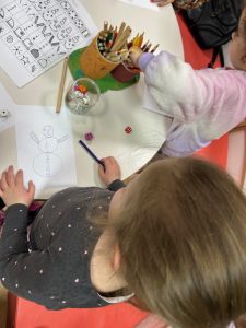 Odslušali smo priče, razgovarali o njima, a onda je došlo vrijeme da i sami izradimo svoje snjegoviće. To smo napravili kroz aktivnost vođenog crtanja, gdje je bacanje kockice odlučivalo o svemu – od oblika, izgleda pa sve do modnih dodataka… Bilo je tu puno posla, ali na kraju smo svi imali zanimljive i skroz posebne snjegoviće.