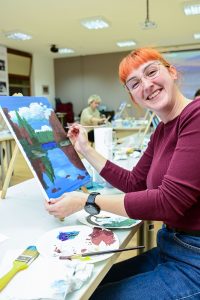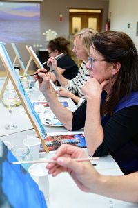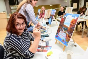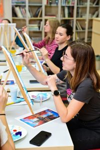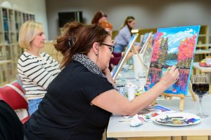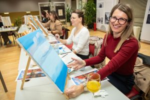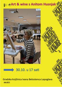 Anita Husnjak i 17 predivnih žena u čitaonici naše knjižnice stvorilo je pravu čaroliju. Uvijek aktualno događanje art&wine ovog je puta iznjedrilo prekrasan jesenski pejzaž; uz odlično vodstvo, glazbeni ugođaj, koji gutljaj vina, koja smo nabavili od domaćih i lokalnih proizvođača, kistovi su preuzeli glavnu ulogu.