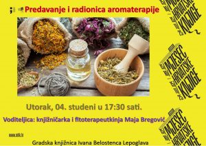 Tako smo mi knjižničari za sljedeće događanje odabrali predavanje i radionicu aromaterapije koje će nam održati knjižničarka i fitoterapeutkinja Maja Bregović! Nakon uvodnog predavanja radit ćemo kremu za ruke!