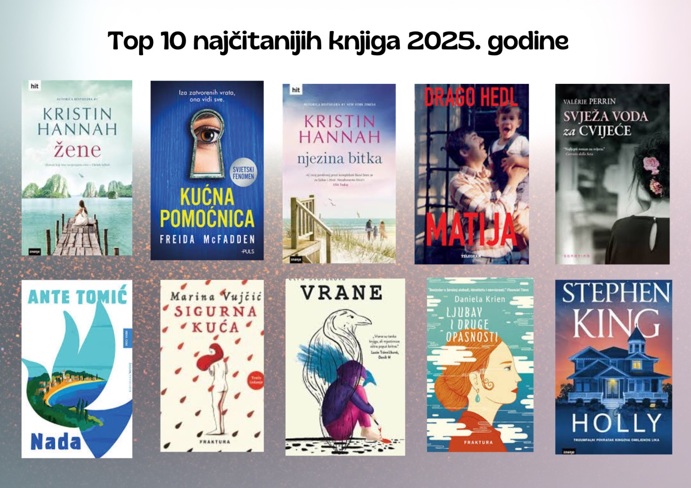 Donosimo vam popis Top 10 najčitanijih naslova 2025. godine za odrasle te Top 5 najčitanijih naslova dječje književnosti 2025. godine.