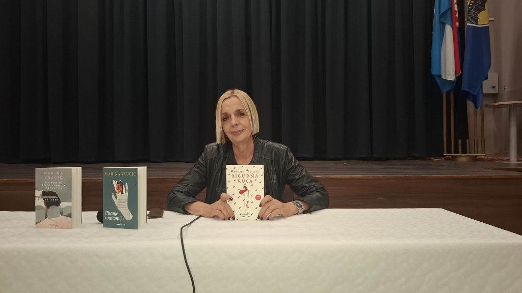 Autorica Marina Vujčić zahvalila se okupljenima te najavila da će sama govoriti o knjizi, što joj je, kako je istaknula, neuobičajeno jer najčešće sudjeluje u moderiranim razgovorima. Naglasila je da je tema nasilja nad ženama iznimno važna i da ju zabrinjava činjenica što se o njoj intenzivnije govori samo jedan dan u godini, iako bi se trebala nalaziti u središtu društvene pozornosti tijekom cijele godine. Unatoč kampanjama i osvještavanju problema, žrtve su često i dalje nezaštićene – kako od sustava tako i od vlastitih obitelji.