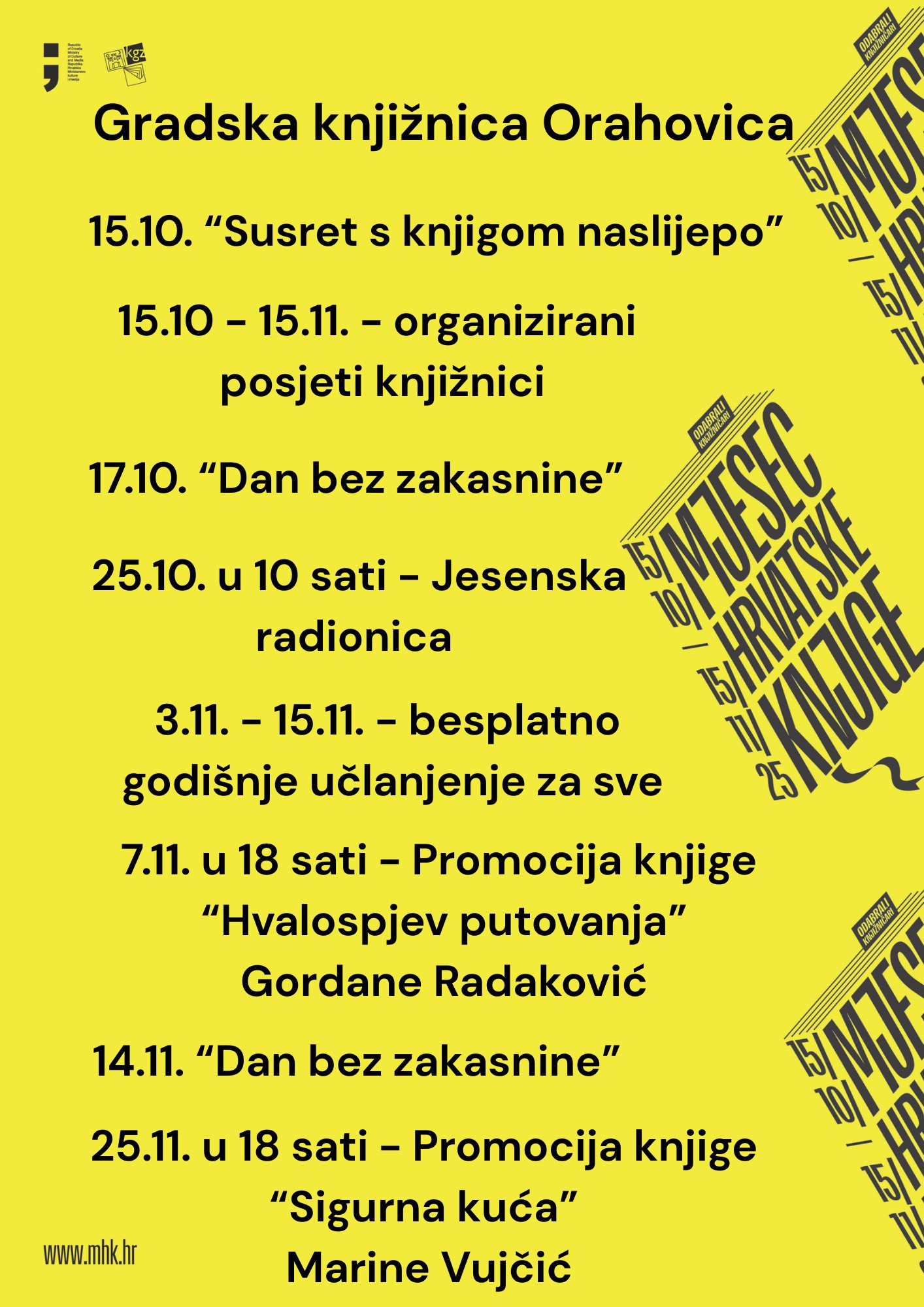 U sklopu Mjeseca hrvatske knjige, u petak 7. studenoga u Multifunkcionalnoj dvorani Orahovica održana je vrlo posjećena promocija najnovije knjige Gordane Radaković – putopisne zbirke „Hvalospjev putovanja“. Događaj je organizirala Gradska knjižnica Orahovica, koja i ove godine kroz niz sadržaja promiče ljubav prema knjizi i čitanju te ističe domaće autore i autorice.