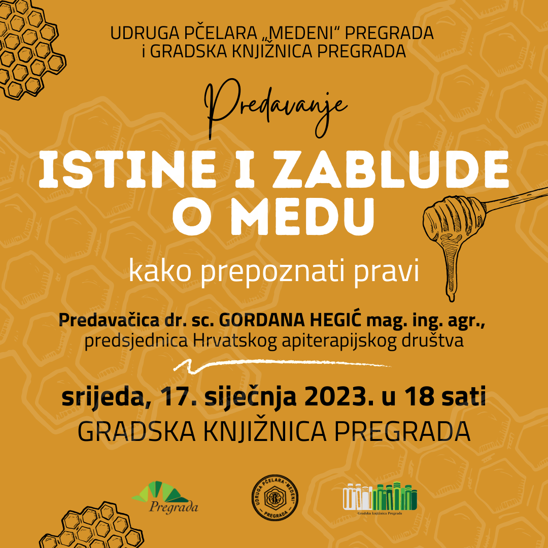 Predavanje zajednički organiziraju Udruga pčelara “Medeni” Pregrada i Gradska knjižnica Pregrada.