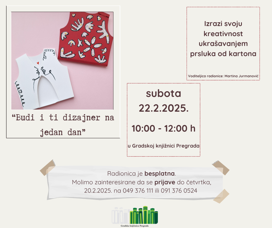 Radionica je besplatna, svi materijali osigurani, a potrebno je prijaviti se: