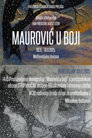 U ponedjeljak,3. studenoga 2025., uKnjižnici i čitaonici Grada Preloga bit će otvorena izložba i promocija monografije „Maurović–stripovi u boji”, u suradnji s Udrugom STRIPoblaČAK.